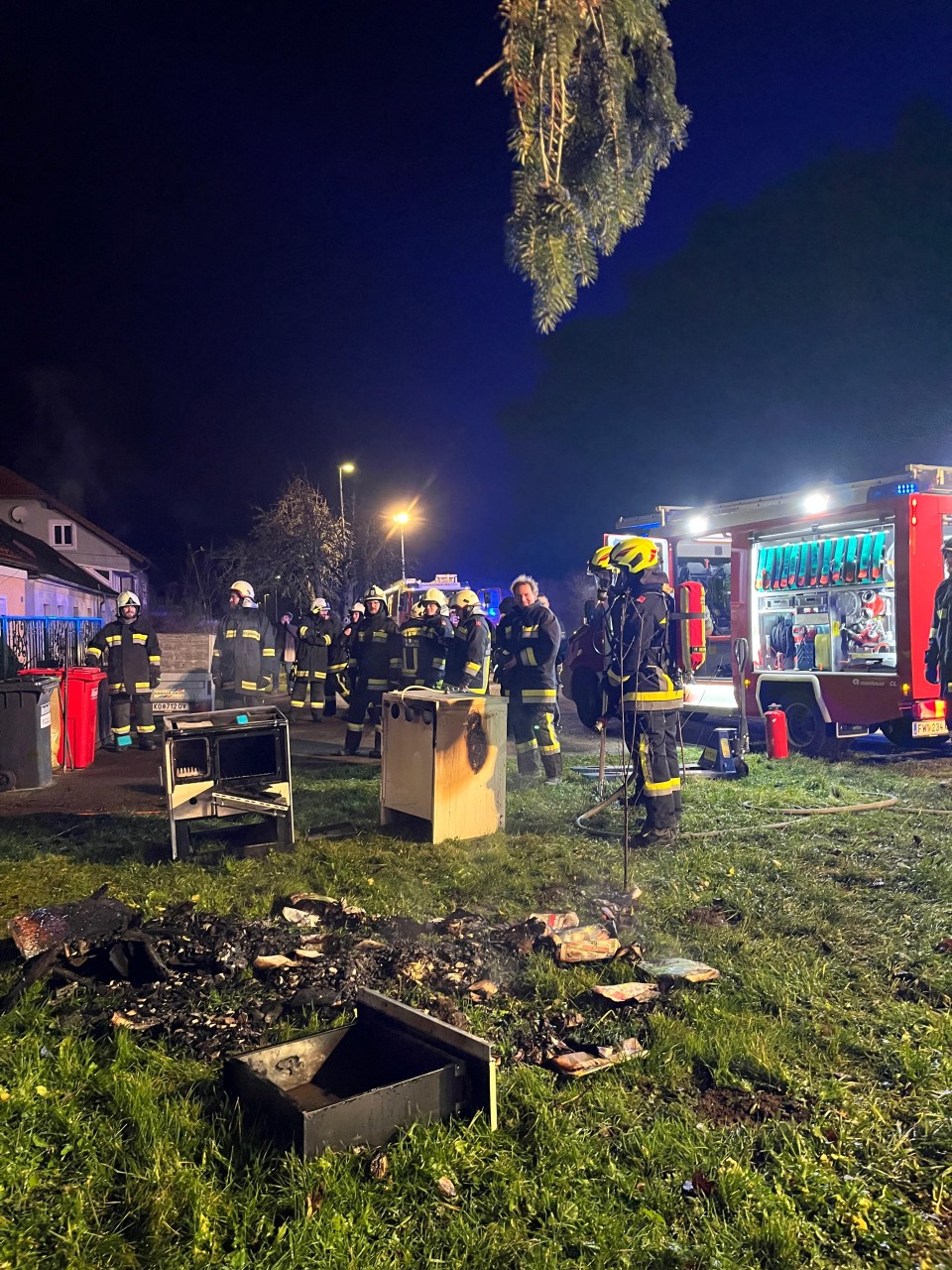Unverzüglich wurde die Brandbekämpfung mittels HD-Schnellangriffseinrichtung vorgenommen. Währenddessen wurde eine Versorgungsleitung sowie eine C- und B-Löschleitung aufgebaut. Unter Atemschutz konnte der Brand aus kurzer Entfernung bekämpft werden. Abschließend wurde der Holzstoß auseinandergenommen und auf Glutnester kontrolliert. Nach etwa 1,5 h konnten wir ins Zeughaus einrücken und die Einsatzbereitschaft wiederherstellen.