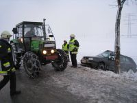 Nahe der Kreuzung nach Haselbach war ein PKW durch Schneeverwehungen ins Schleudern