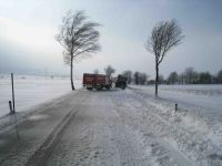 Ein slowakischer LKW stand aufgrund der Straßenglätte quer auf der Steigung beim Ortsende Obergänserndorf