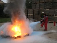 Bei der praktischen Brandbekämpfung mit dem Feuerlöscher wurde die richtige Anwendung geübt,