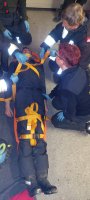 Als Übungsannahme war ein PKW gegen eine Hausmauer gekracht, zwei PKW-Insassen waren eingeklemmt, der PKW im Innenraum verraucht und bei einem