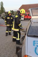 Das Übungsziel war der verbesserte Umgang mit dem hydr. Rettungssatz, dem ATS-Gerät und sonstiger technischer Geräte (Brecheisen, Winkelschleifer, ...).